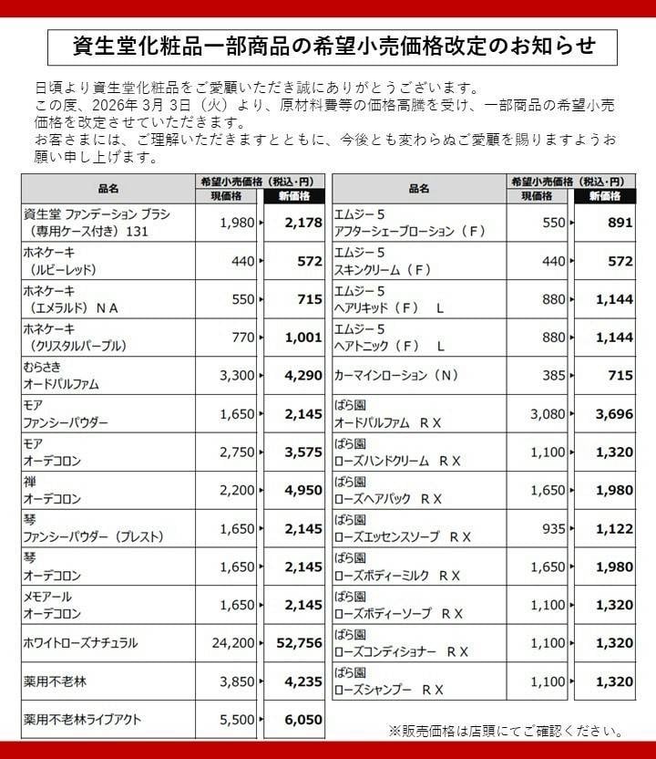 この度クレ・ド・ポー ボーテでは、かねてからの原料費等の価格高騰を受け、