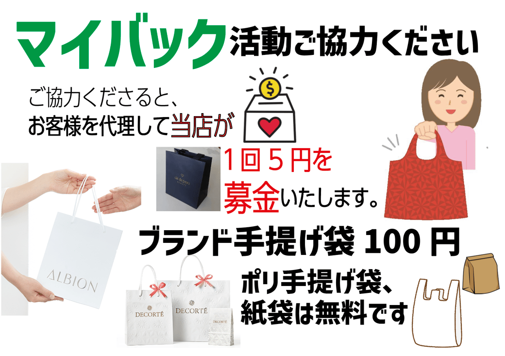 エコ活動の一環として、マイバックでお買い物いただくことを推奨しています。