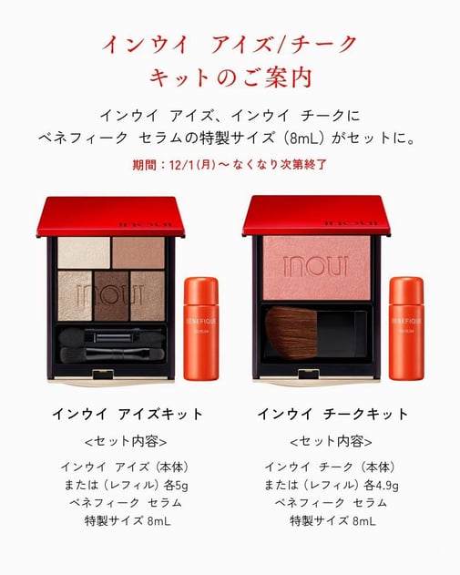 インウイ アイズ、インウイ チークにベネフィーク セラムの特製サイズ(8mL)がセットに。