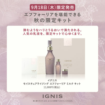 ラディアンスリニューラインの乳液と化粧水のミニサイズをセットに。